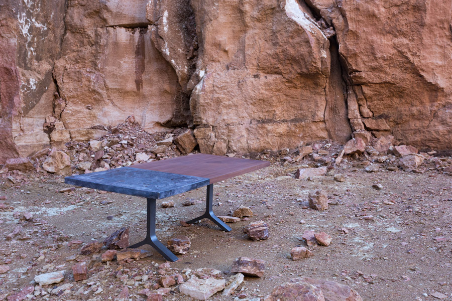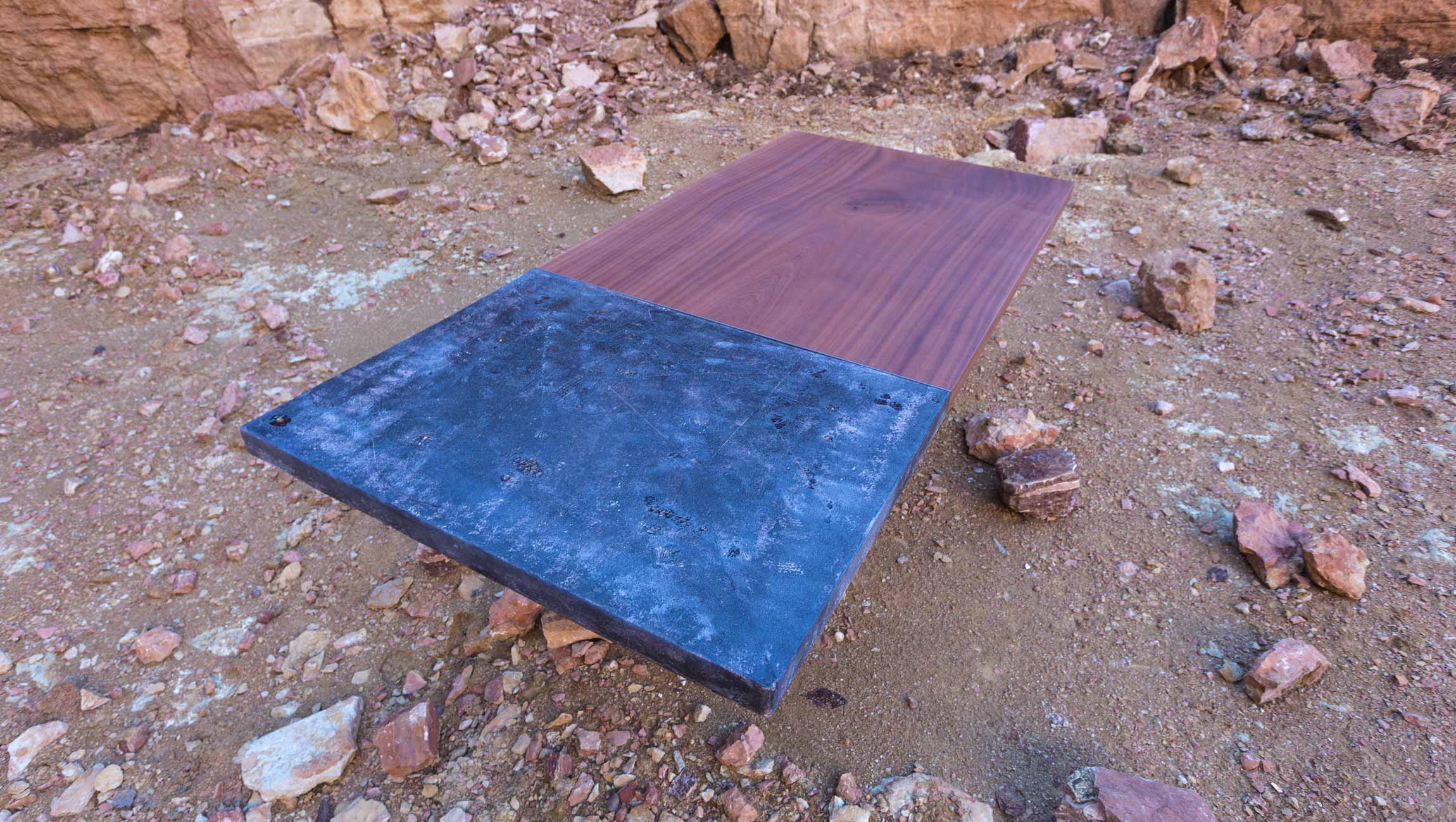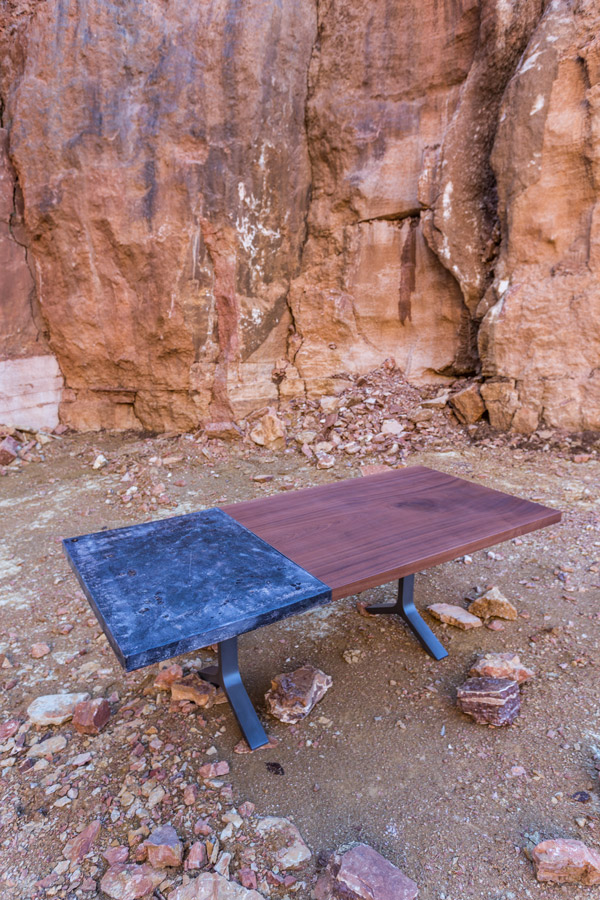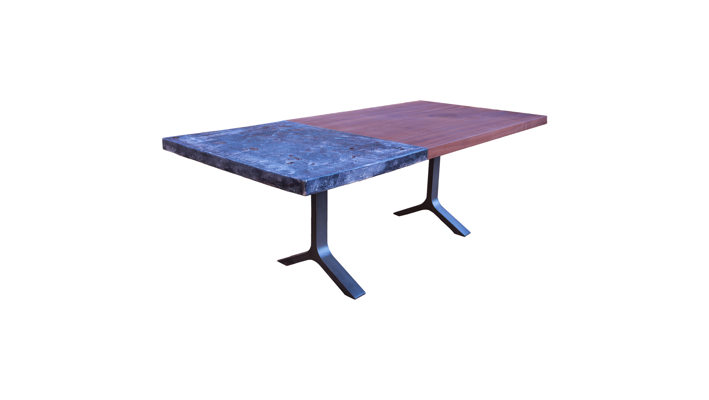Antique mahogany wood extracted from a plant of more than 12 meters, handmade ceramic, basement in melting metal, create a single pieces.