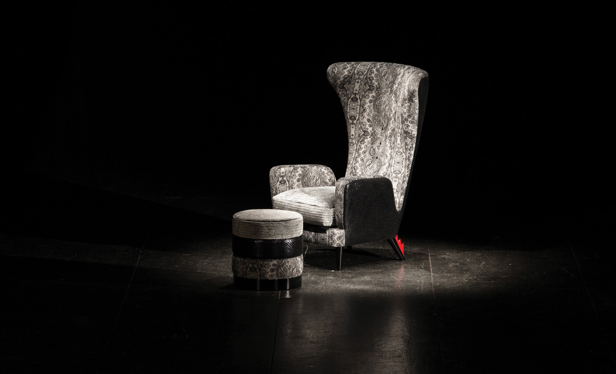 Si chiama Grimilde è una Berger fatta a mano, minuziosamente rivestita e contaminata tecnicamente dall'utilizzo della stampante 3D per svilupparne delle parti. Vestita di materiali pregiati che cambiano come cambiano le stagioni, fresca come la primavera, appassionata come l'estate, riflessiva come l'autunno, forte come l'inverno, scegli la tua stagione preferita e vestila con il tuo "umore"... Struttura in legno massiccio e multistrato con cinghie elastiche, imbottitura schienale e bracciolo in poliuretano espanso indeformabile due densità, piedino in legno nella variante noce o faggio, cresta stampata con tecnologia di stampa 3D in ABS, collezione non sfoderabile.
