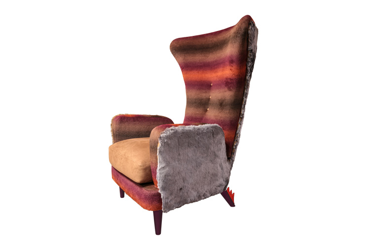 Si chiama Grimilde è una Berger fatta a mano, minuziosamente rivestita e contaminata tecnicamente dall'utilizzo della stampante 3D per svilupparne delle parti. Vestita di materiali pregiati che cambiano come cambiano le stagioni, fresca come la primavera, appassionata come l'estate, riflessiva come l'autunno, forte come l'inverno, scegli la tua stagione preferita e vestila con il tuo "umore"... Struttura in legno massiccio e multistrato con cinghie elastiche, imbottitura schienale e bracciolo in poliuretano espanso indeformabile due densità, piedino in legno nella variante noce o faggio, cresta stampata con tecnologia di stampa 3D in ABS, collezione non sfoderabile.