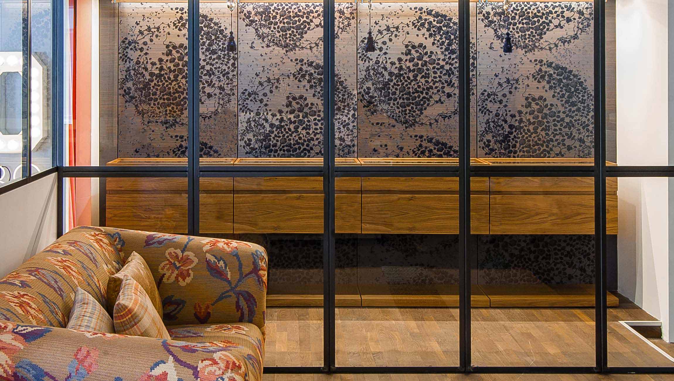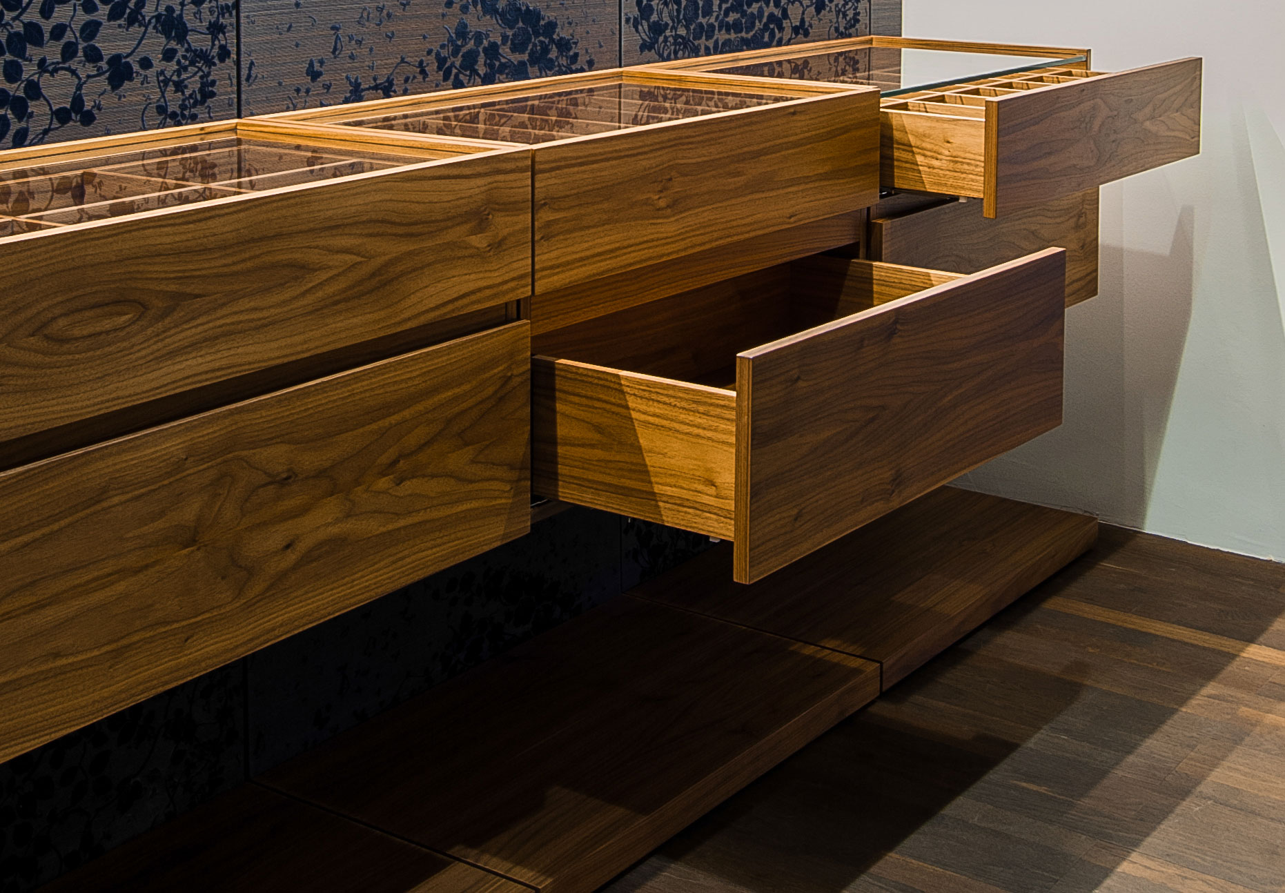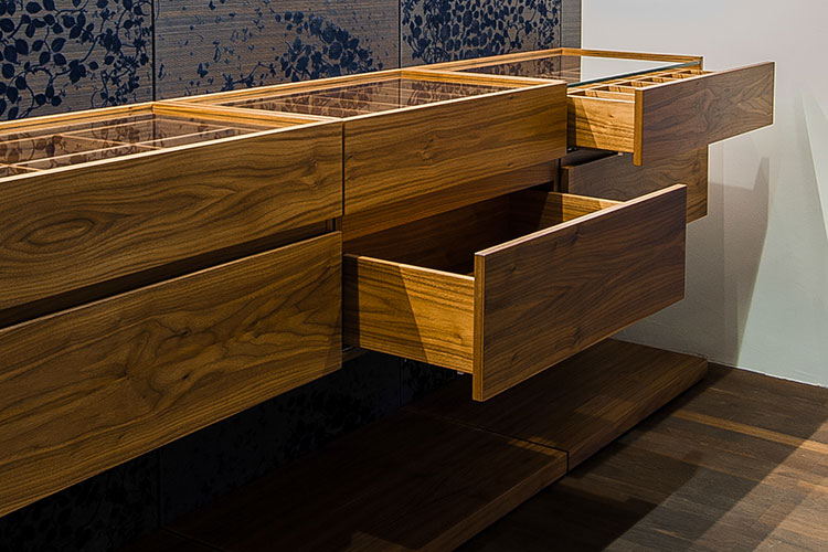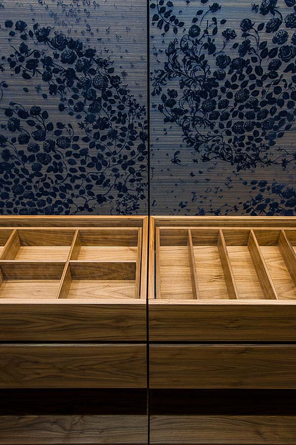 Cosa ci ha ispirato? La voglia di creare una cabina armadio elegante, a misura delle tue esigenze e dei tuoi gusti, con essenze pregiate, con rivestimenti esclusivi, con dettagli solo tuoi, Millenove89 esaudisce i tuoi desideri. Cabina armadio Walk in Endless realizzata in essenza di noce e rivestimento decorativo, cassetti sospesi, personalizzabili, con piano in vetro. Su misura e abbinati tutti i dettagli. Vetrata in metallo su misura, progetto Millenove89.